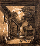 Laugée. Pierre noire, estompe et rehauts de gouache blanche sur papier beige. Collection Particulière. Annoté "Viannes" et daté de 1870(?). Une cour de ferme, peut-être vers Vianne dans le Lot-et-Garonne, sans certitude, compte tenu que rien ne rattache le peintre à cette commune.