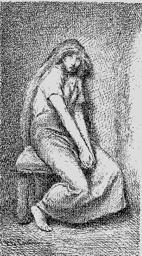 Marguerite en prison : Peinture de Philibert Léon Couturier. Huile sur toile. Belle représentation de la Marguerite du Faust de Goethe, apeurée et affligée, assise sur le tabouret de sa cellule. Collection particulière. Présentée au Salon des Artistes Français de 1898. Spécialiste de la peinture des basse-cours, le peintre excellait aussi dans les portraits.
