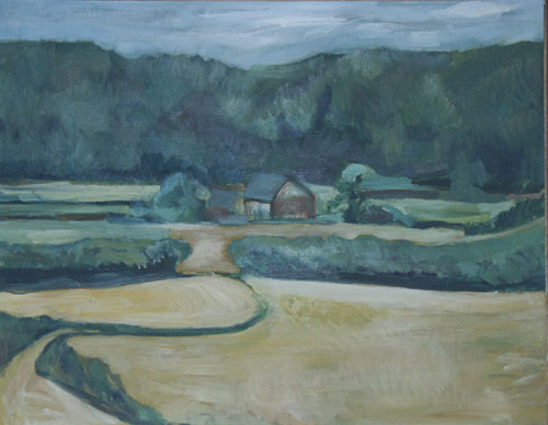 Collection privée. 1977, évocation de la campagnenormande le long de la vallée de la Risle.
