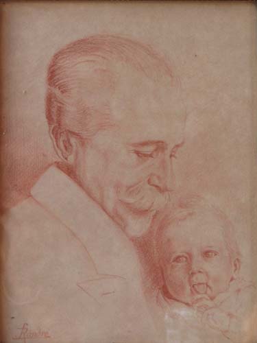 Technique : Sanguine Support : Papier Sujet : Roger Landré représente son beau père et son neveu Localisation : Collection-Particuliere Date : inconnue -