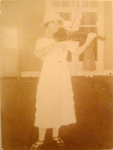 Odette Malézieux jouant du violon.